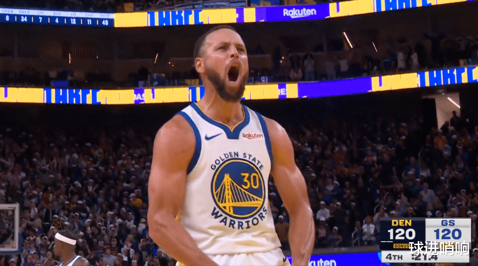 从库里的得分分布也能看出这一点,首节库里仅拿到3分,次节依旧只有4分,但经过上半场的适应与中场的调整后,库里下半场开始适应掘金队的防守策略,并且开始见招拆招。